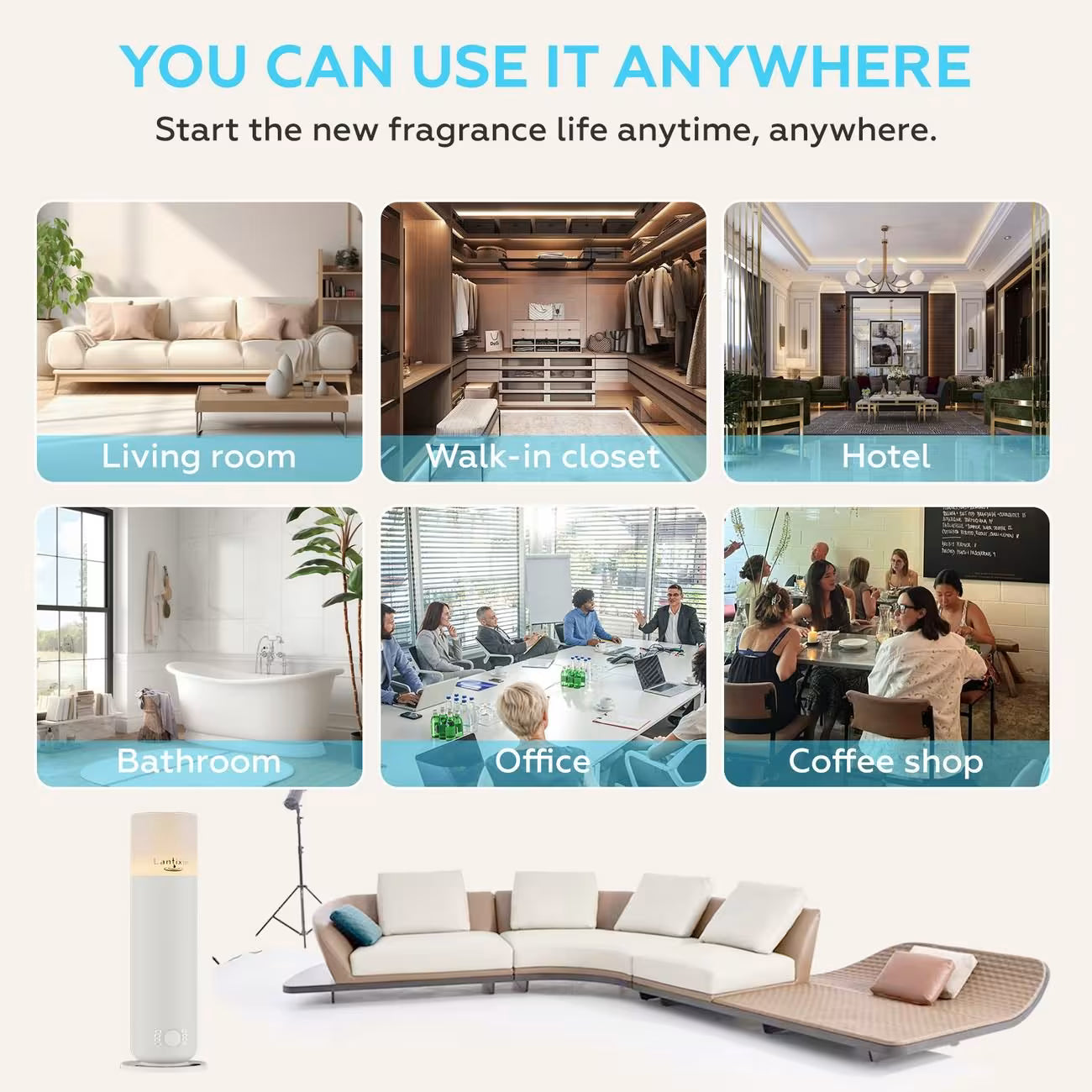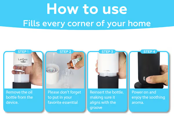 This home scent diffuser is suitable for the living room, bedroom, and other areas.