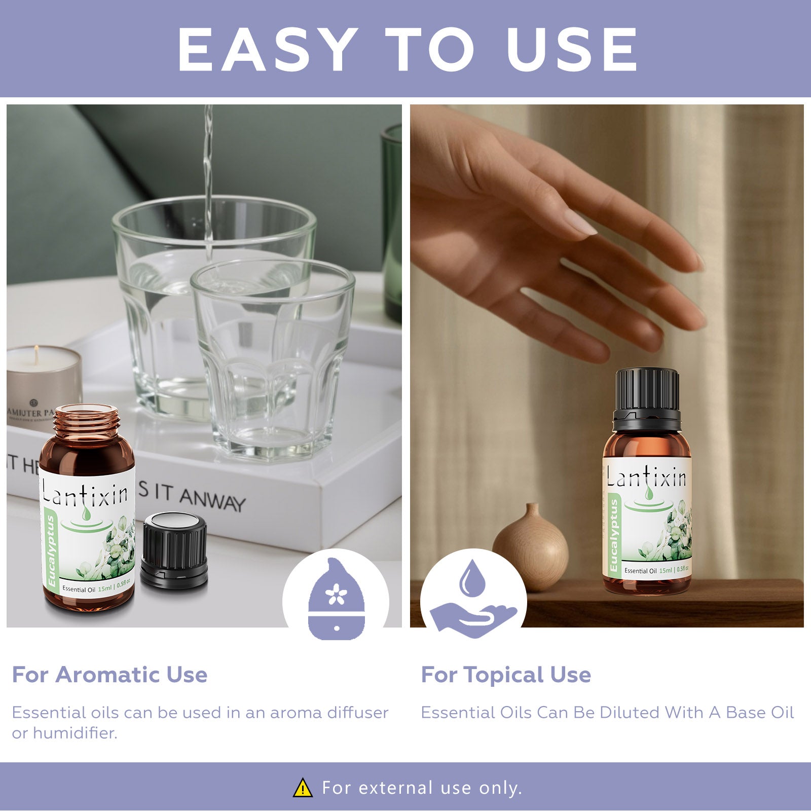 Lantixin Eucalyptus Essential Oils - Pure and Natural Eucalyptus Oil - Premium Grade Essential Oils for Diffusers